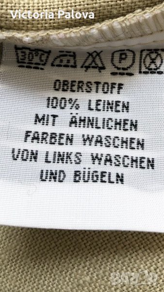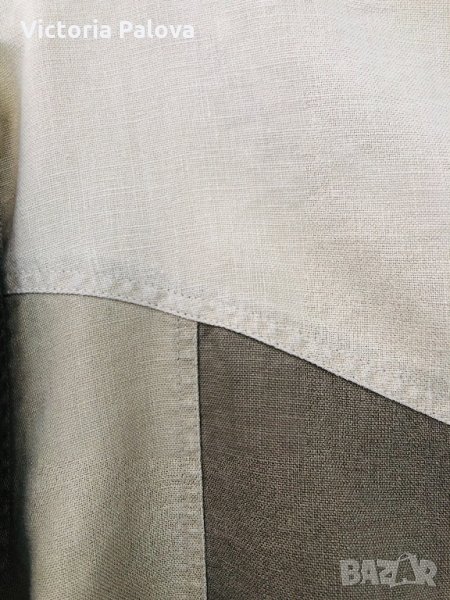 Много красива блуза,груб лен,който не се мачка,интересна кройка-на парчета с различни цветове(3 цвята) и във вид на камбанка.рамене-45-46см,гръдна обиколка-61-62см,дължина-74-75см,ръкав от рамо-58см,от подмишницата-44см.блузата е германска.