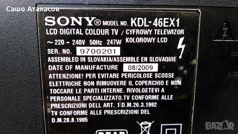 SONY KDL-46EX1 с дефектна матрица ,АPS-241 ,1-878-242-11 ,1-878-243-11 ,1-878-182-11 ,1-877-582-11
