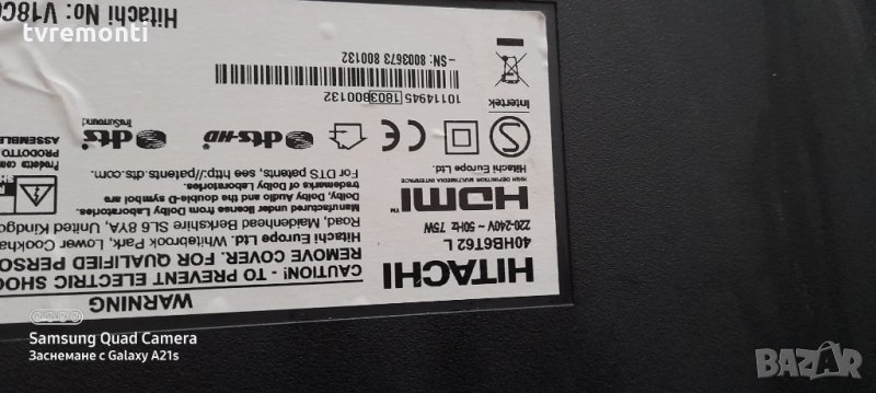 Демонтиран от телевизор Hitachi 40HB6T62L със счупен дисплей