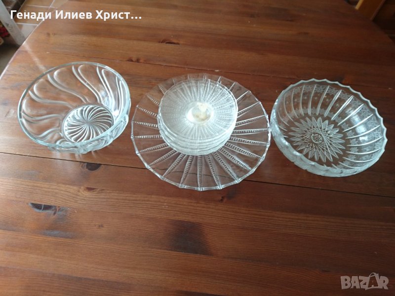 Домашни ретро сервизи и комплекти от прозрачно стъкло. Неизползвани. Събирани през 70-те и 80-те години. Някои са още с етикети.
