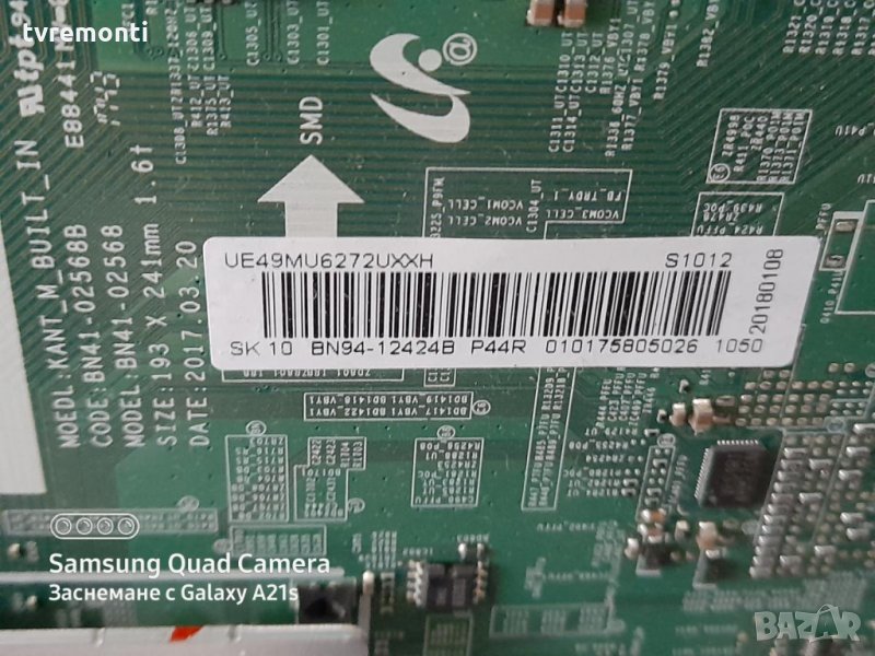 MAIN AV BN41-02568B BN94-12424B SAMSUNG UE49MU6272 U дисплей CY-WK049HGLV4H Борда е гарантирано работещ Демонтиран от телевизор със счупен дисплей CY-WK049HGLV4H тествана от нашия техник