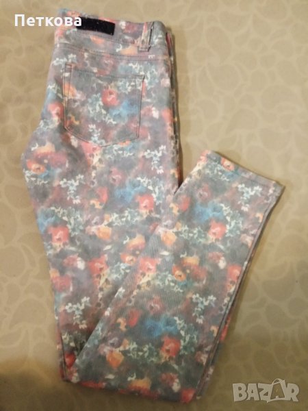 Почти нови дамски панталони, тип дънки, с цветен принт. Леки и удобни. Подходящи за различни поводи. Деним, производство Турция.