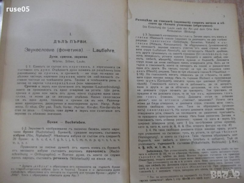 1. Нѣмска граматика - частъ първа - Фонетика , етимология и морфология - 256 стр. от 1931 г.