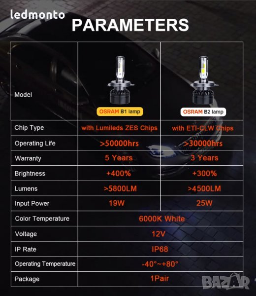 * Тип щепсел: единичен лъч: H4 H7 H1 H11 H16 9005 9006 9012