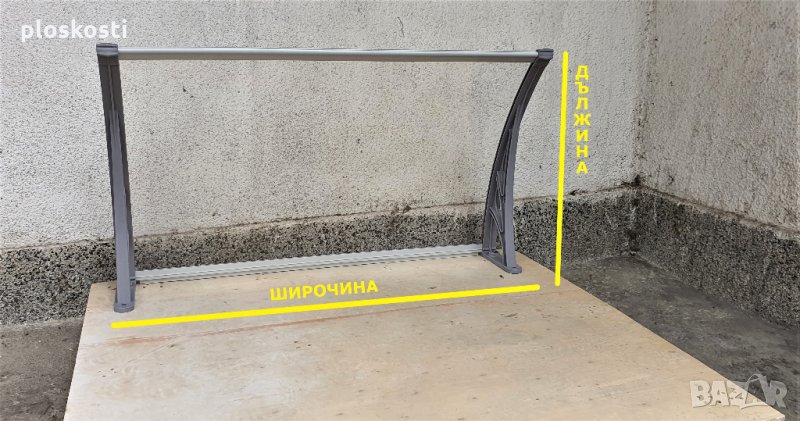 Навес от плътен поликарбонат - козирка, дебелина 3 мм. + UV защита, стойки от инженерна пластмаса