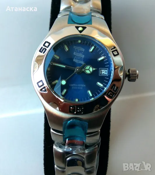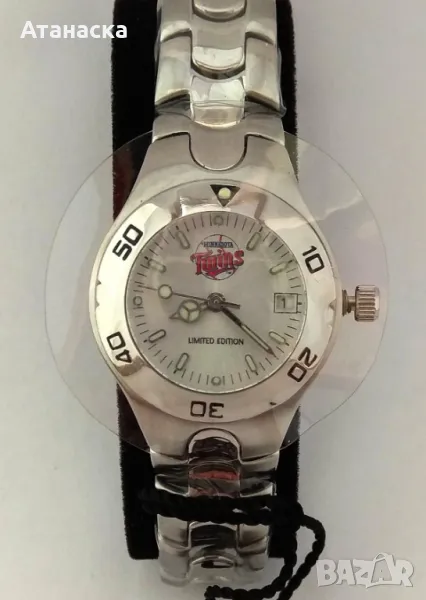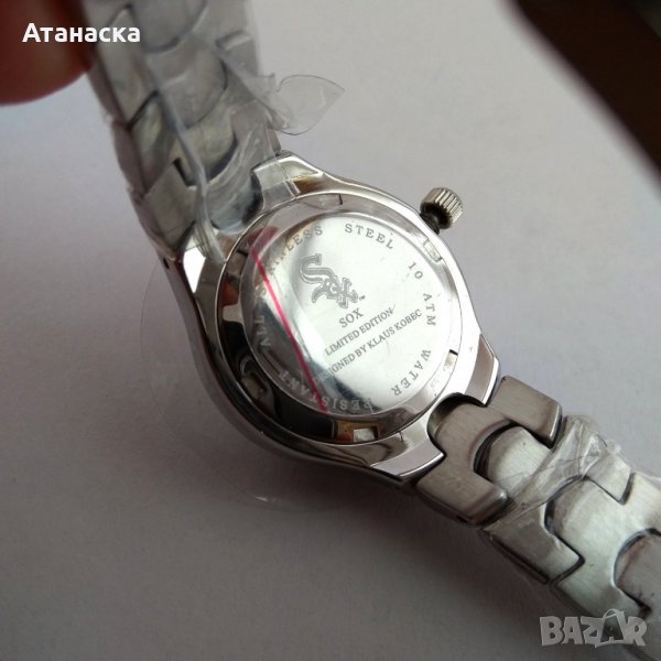 Супер промоция , няма такава цена дори в Западна Европа и Америка ! Часовника е на дизайнерската компания Klaus-Kobec , лимитирана серия с емблемата на бейзболният отбор Chicago White Sox . Чисто нов красив английски дизайнерски часовник с качествен швейцарски кварцов механизъм , неръждаема полирана стомана . Часовника е лимитирана серия , светещи стрелки и индекси , триъгълничето на базела също е светещо , кристално стъкло , дата на 3 часа , воден 10 атмосфери (100м), диаметър 26мм без коронката . Чисто нова батерия . Часовника е с луксозна дървена кутия в цвят махагон или бял гланц (по избор) . Внос от Англия . От същата серия имаме налични часовници с емблемите на бейзболните отбори Birmingham City, Minnesota Twins, Kansas City Royals, Montreal Expos . Повече информация на лично съобщение . Внимание - в сайта снимките се качват с понижено качество , който иска мога да му пратя такива с по-добро качество !