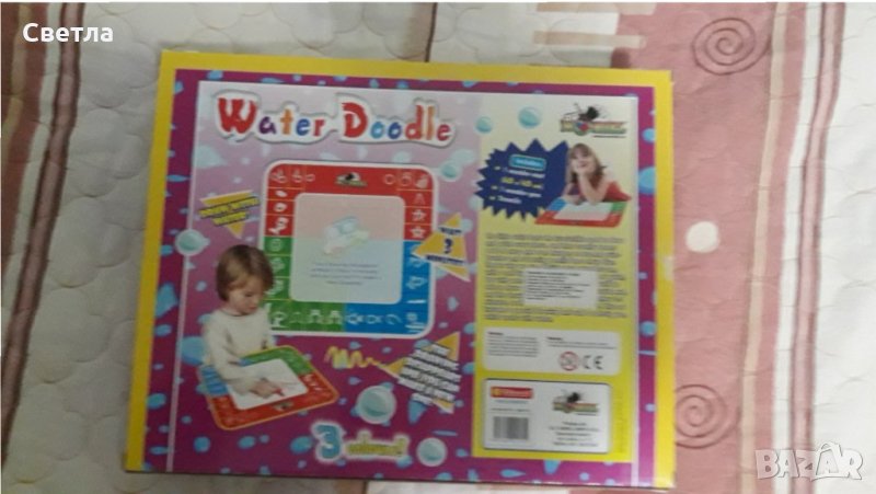 Вълшебно килимче на малкия художник, което е практично, защото детето не може да се изцапа. За да рисуваш на него е необходима само вода! Налей вода в писалката и рисувай на воля без да цапаш. А след като изсъхне, нарисуваното изчезва и можеш да рисуваш и оцветяваш отново и отново. Може да се нарисува всичко само с помощта на водната писалка, която се пълни с вода от чешмата. Намира се в гр. София, ж.к."Сердика". Разгледайте и другите ми обяви. При закупуването на два или повече артикула, давам отстъпка.