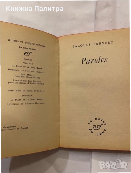 Paroles Jacques Prévert, снимка 1 - Художествена литература - 31236804 Paroles Jacques Prévert, снимка 2 - Художествена литература - 31236804 1/2