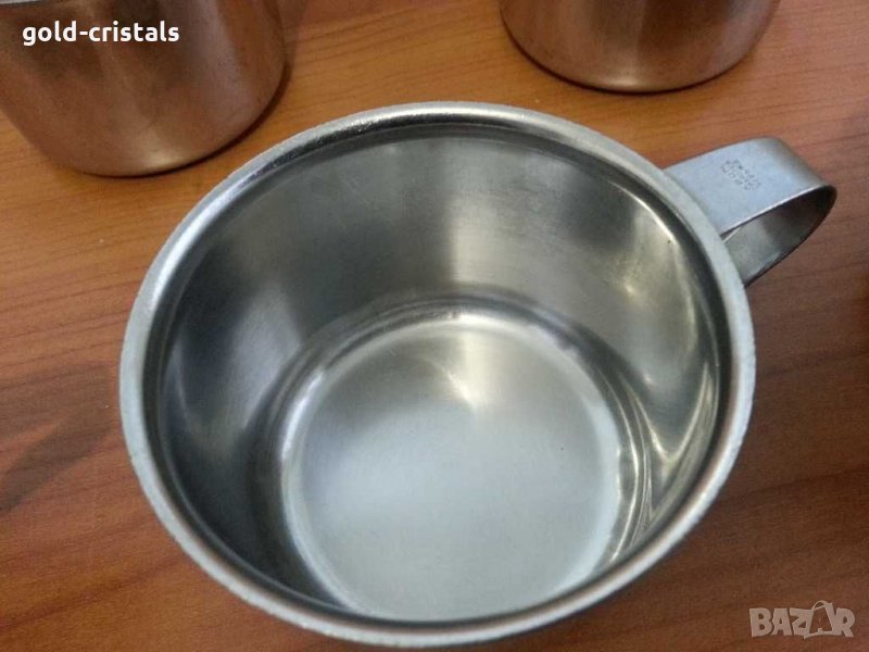 Стара българска алпака хром чаши с дръжка маркирани дебел масивен материал неръждаеми 6 броя сервиз комплект сет лот ретро арт декор винтидж колекция стари старинни антикварни предмети обзавеждане за дома и семейството подходящи за подарък за ценители и колекционери