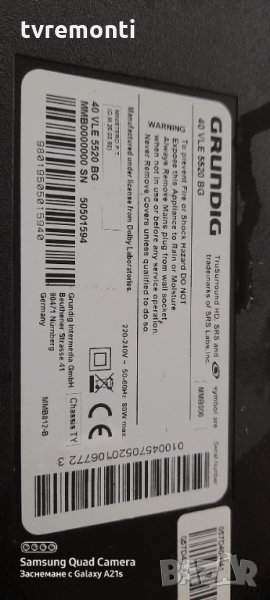 Захранваща платка , VTY194-33 от телевизор GRUNDING модел 40VLE5520 BG Борда е гарантирано работещ Демонтиран от телевизор GRUNDIG модел 40VLE5520 BG със счупен дисплей BMS SS 50HZ DLED 057D48-A15 тесвана от нашия техник