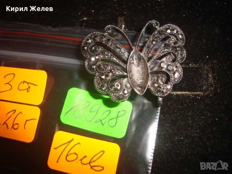 БРОШКА ПЕПЕРУДА с МАРКАЗИТИ СРЕБРИСТА 18928