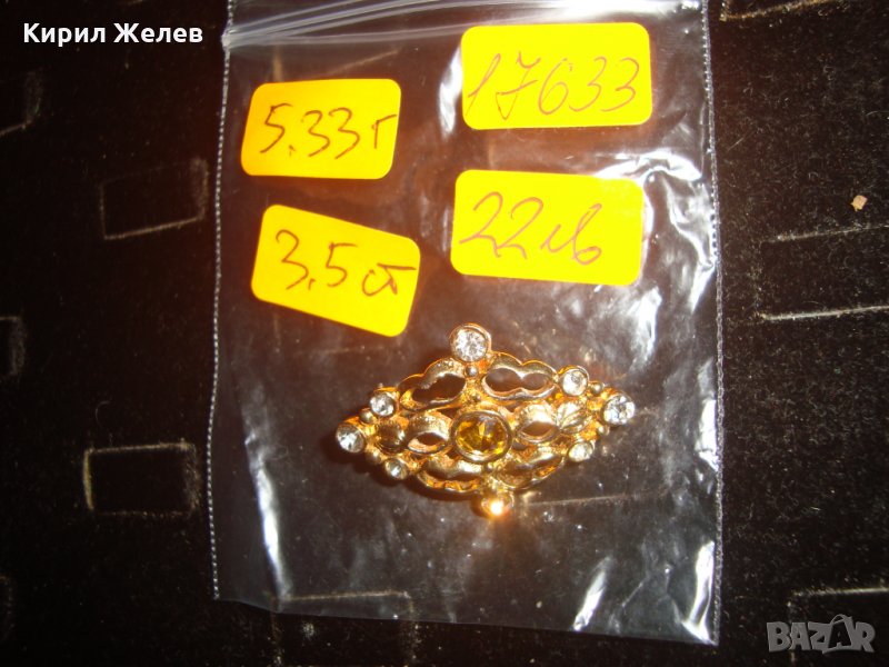 ПОЗЛАТЕНА РЕТРО БРОШКА с ИНКРУСТИРАНИ КАМЪНИ 17633