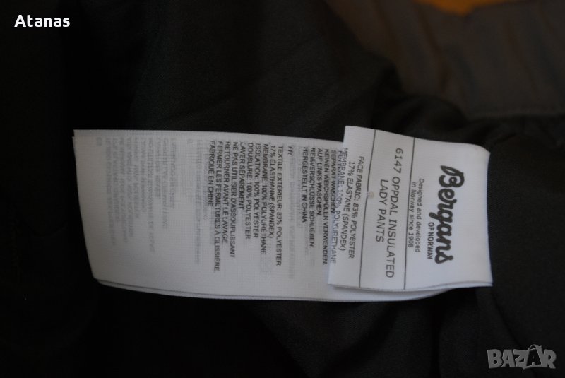 Версията Oppdal Insulated включва олекотен синтетичен пълнеж за изолация, наречен Bergans ArcticInsulation. Панталонът продължава да диша отлично, да бъде водо и ветроустойчиво, като осигурява топлина и отлична изолация, дори и при употреба в мразовити условия.