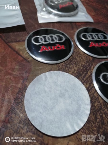 Продавам алуминиеви самозалепващи стикери с диаметър 56 мм за централна капачка с диаметър 60 мм на джанта на Ауди .