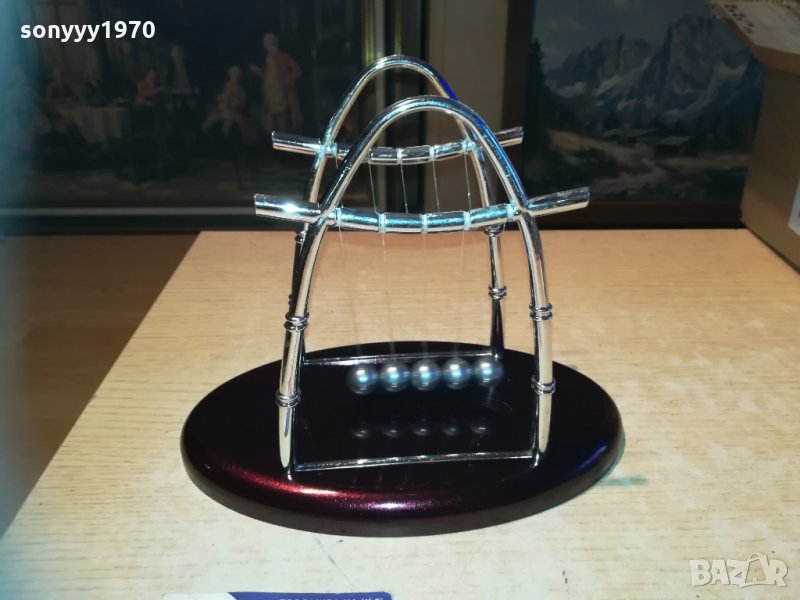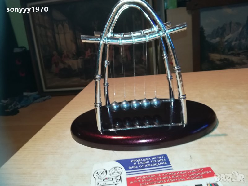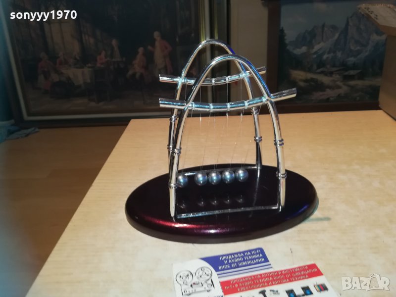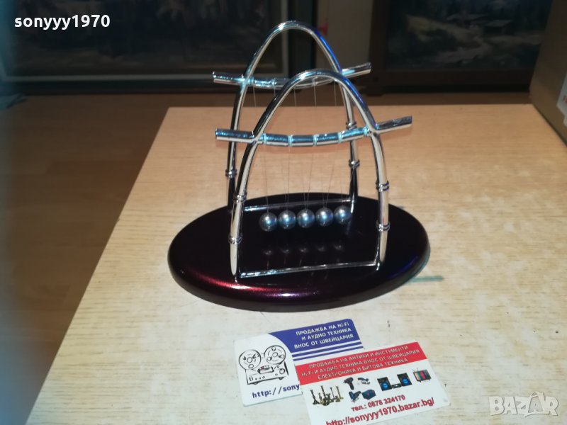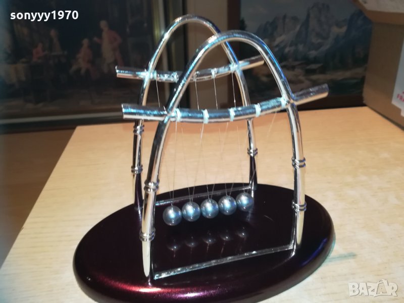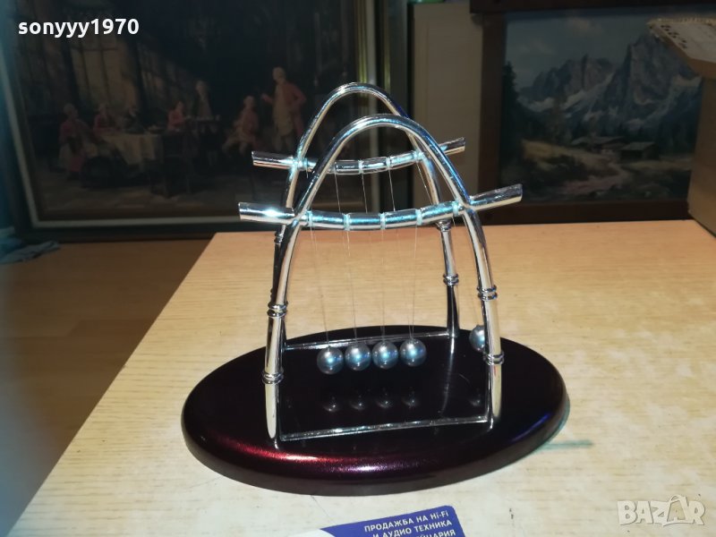 Сувенирна фигурка - Люлката на Нютон - пет стоманени топчета, окачени на стилна рамка, демонстрираща законите на физиката. Помага на човек да се отпусне без значение дали е в офиса или у дома. Размери - 22х18х14см.от днес 28.02.22г пращаме със спиди или еконт с преглед и тест след превод на капаро за куриерската услуга поради зачестили некоректни потребители-поръчки само в тук в саита! по телефона и със смс не! краини цени! бартери не правиме! всеки ден нови неща-още 2-3 наши обяви тук