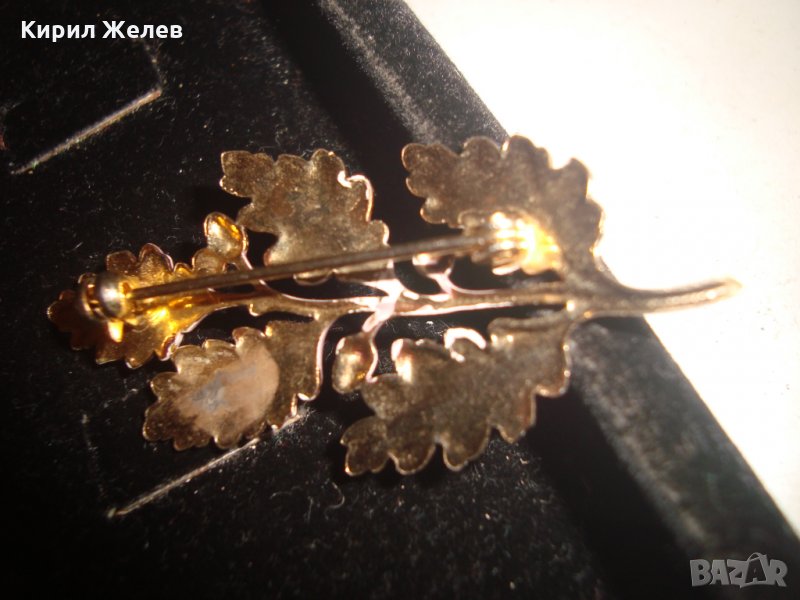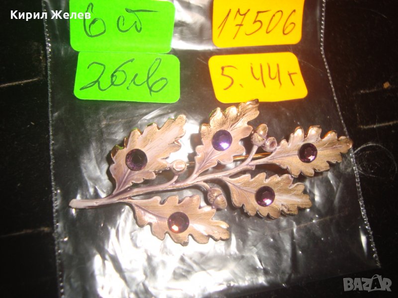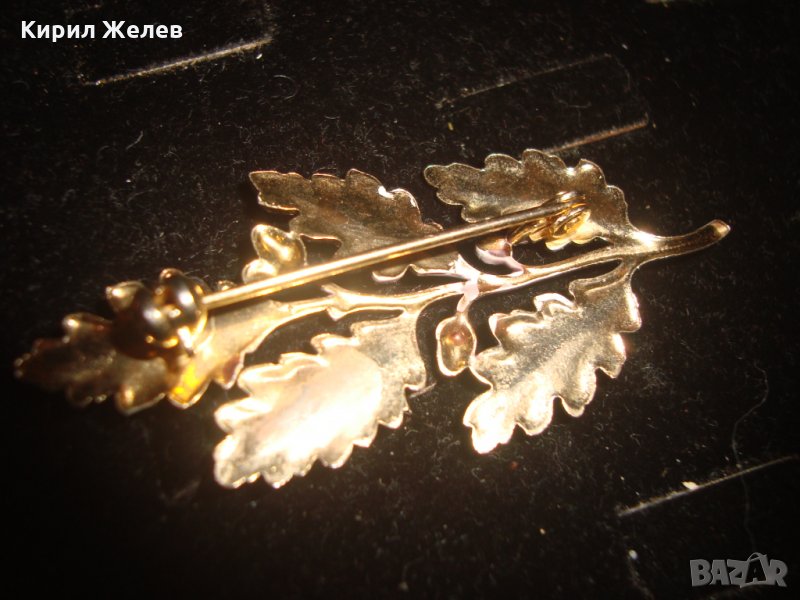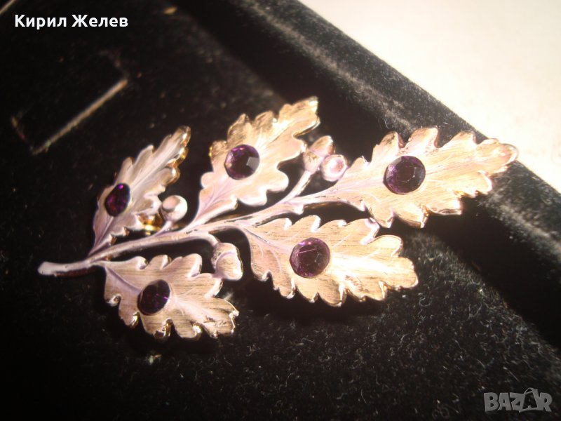 ПОЗЛАТЕНО ДЪБОВО ЛИСТО с ИНКРУСТИРАНИ СКЪПОЦЕННИ КАМЪНИ АМЕТИСТ АРТ БРОШКА 17506