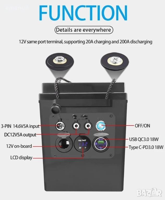 12V 200Ah LiFePO4 LiitoKala с допълнителен мултифункционален захранващ панел