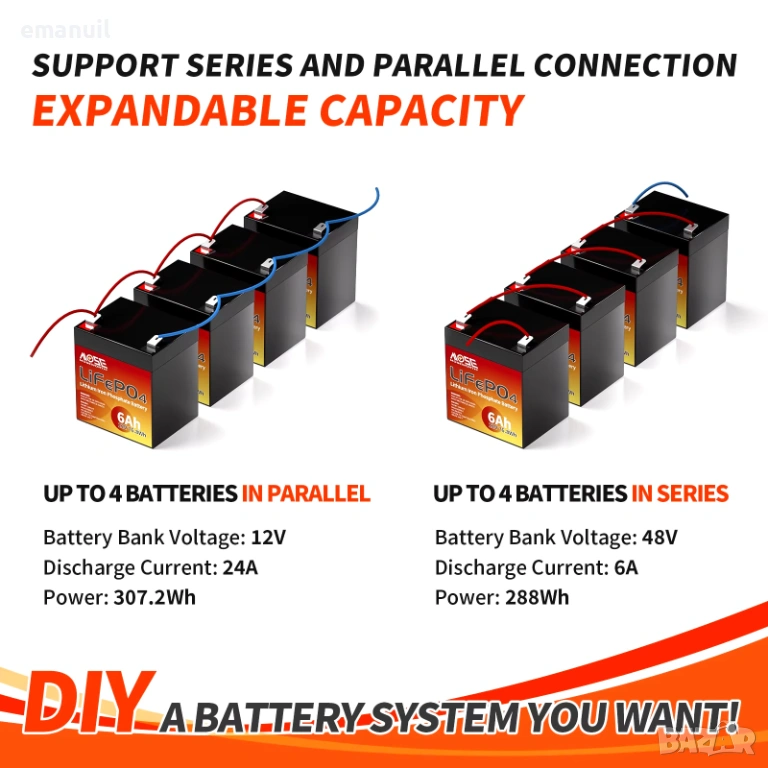 LiFePO4 12V 24V 36V 48V 6-300A под бранда MOSEWORTH или DEESPAEK