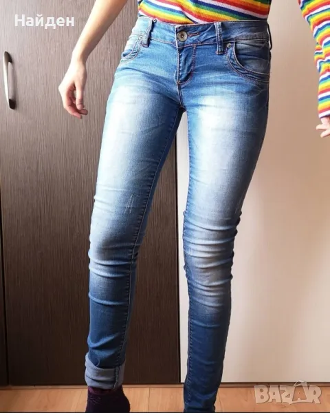 Светло сини прилепнали дънки skinny размер 27, средна талия, обиколка на талията 74 см, дължина 95 см, в отлично състояние - 8 лв