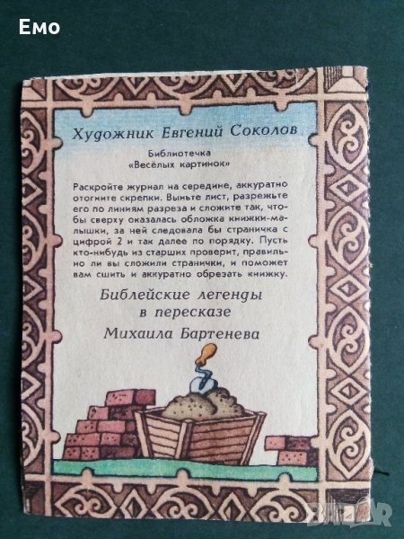 - "Вавилонската кула"(малка детска книжка на руски с картинки, 16 стр. - задна корица).