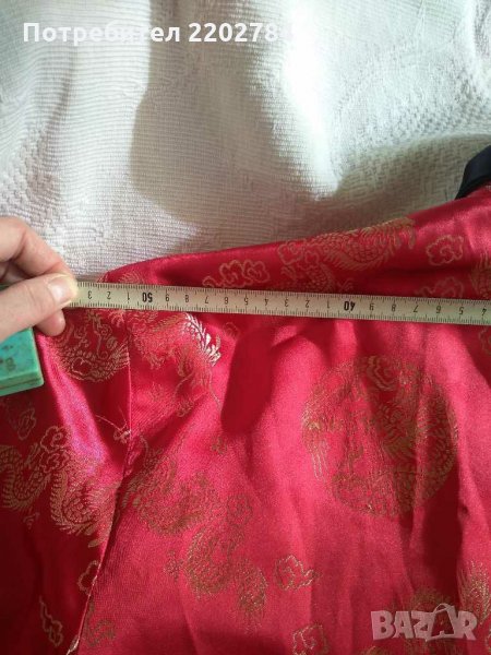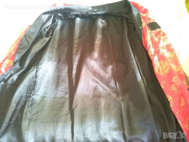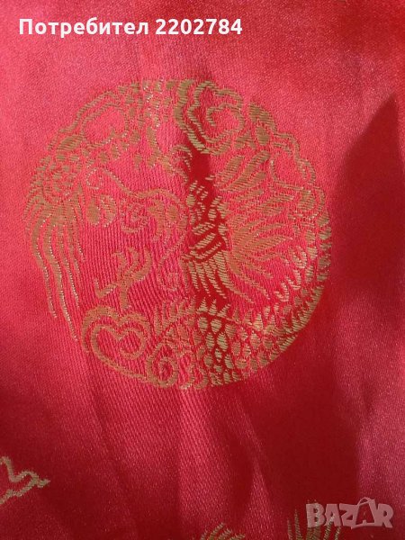 Наситено червен цвят със златисти китайски мотиви -дракони и медальони.Отвътре също подплатен с черен сатен.
