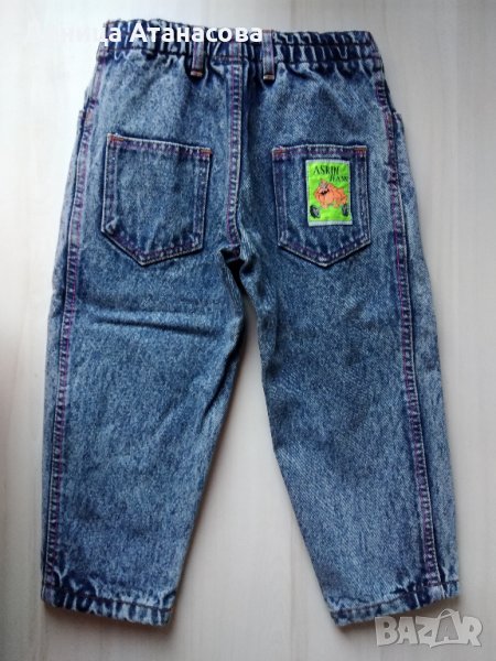 2) плътни ватирани дънки с дължина от ластика 57 см / от чатала 38 см - 4 лв.