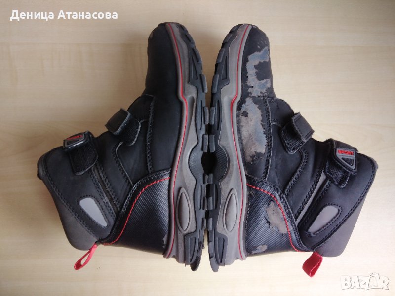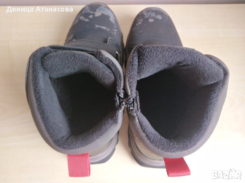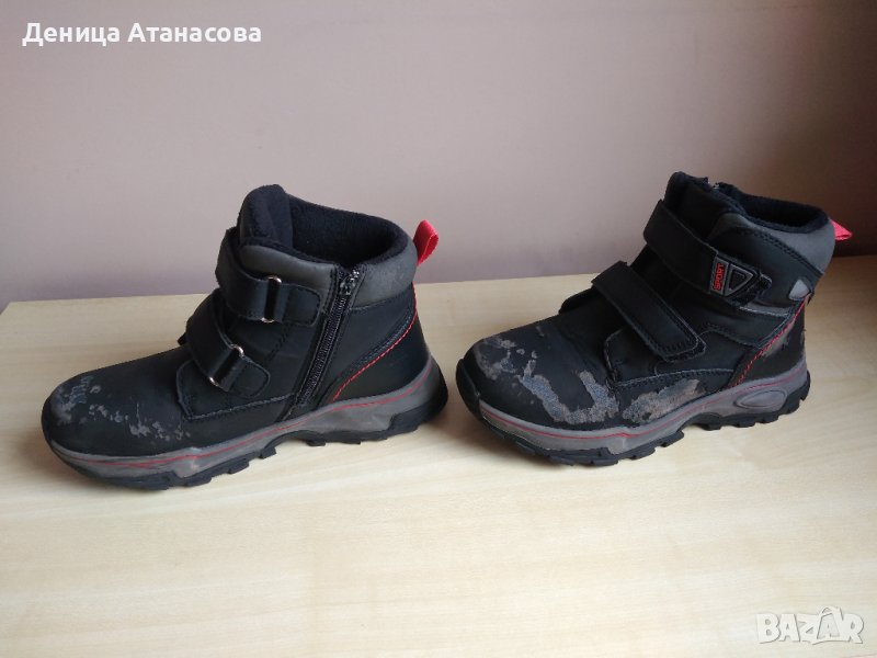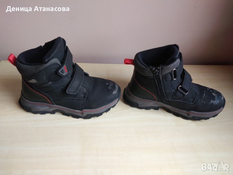 Здрави и топли черни зимни боти Clibee номер 35/36, стелка 22 см, закопчават се с две велкро лепенки, забележката е, че отпред са излющени и едната повече отстрани, но това е козметично и може да се запълни с боя, купени са за 45 лв.