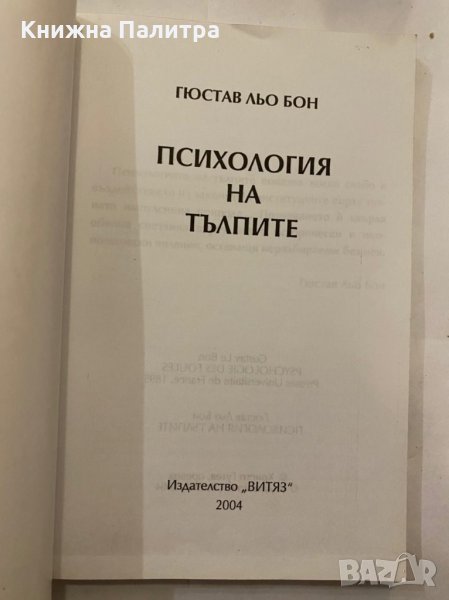 Психология на тълпите , снимка 1 - Художествена литература - 31279931 Психология на тълпите , снимка 2 - Художествена литература - 31279931 Психология на тълпите , снимка 3 - Художествена литература - 31279931 Психология на тълпите , снимка 4 - Художествена литература - 31279931 1/4
