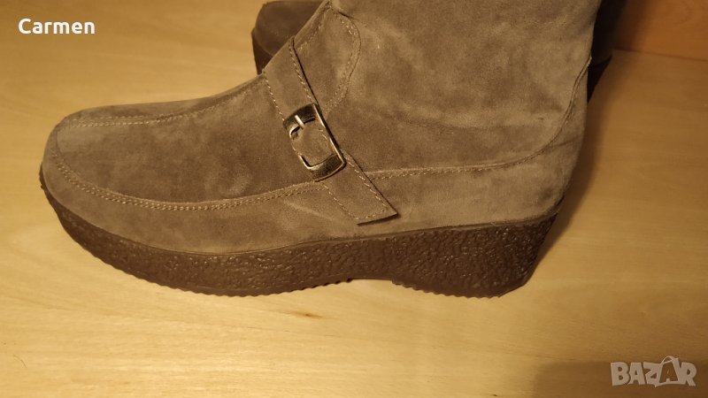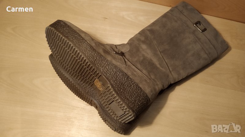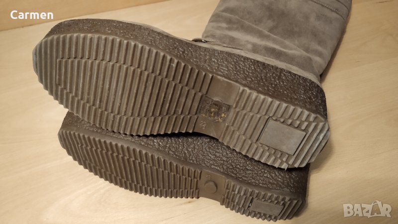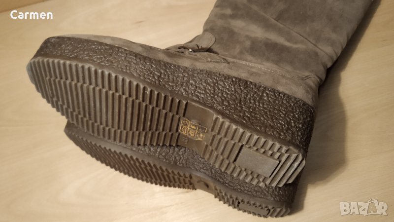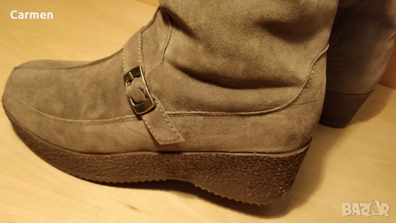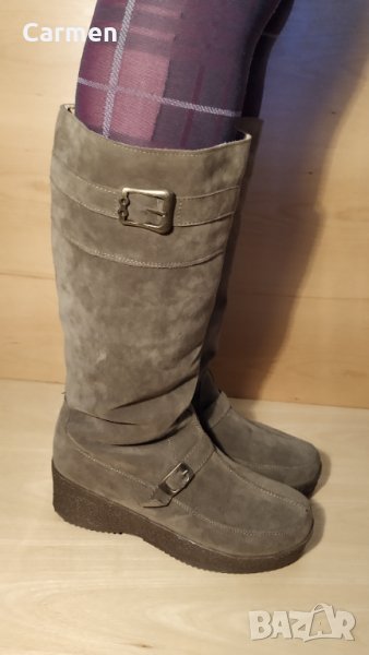 Предлагам нови италиански дамски ботуши още стоят лепенките под обувките. ОРИГИНАЛНИ, произведени в Италия много качествена изработка! Подходящи както за ежедневно носене, така и за по-специални случаи. Топла и удобна обувка. Цветът е бежов, но на снимките от светлината изглежда зеленикъв.