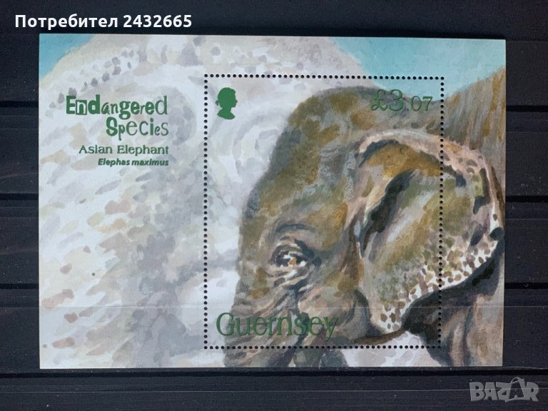 Гърнси2010 - “Фауна. Застрашени видове: Азиатски слон ”,**,MNH: