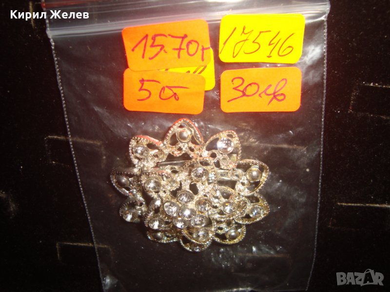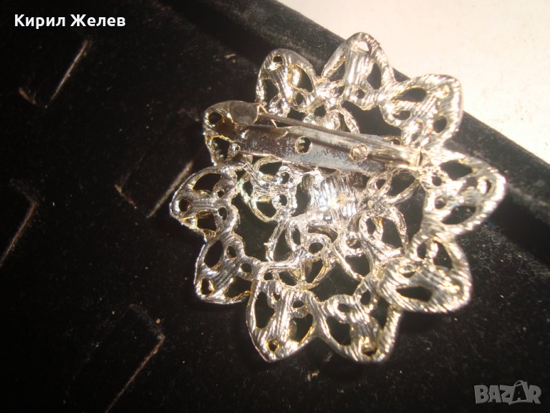 СРЕБРИСТА ФЛОРАЛНА КРАСИВА РЕТРО АРТ ДЕКО БРОШКА с КАМЪНИ 17546