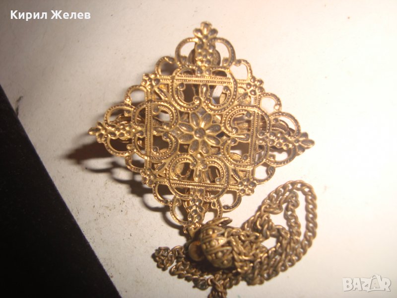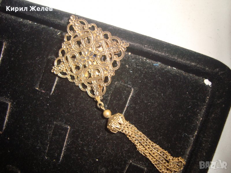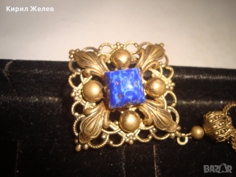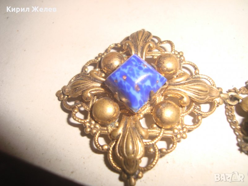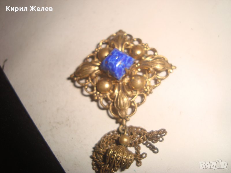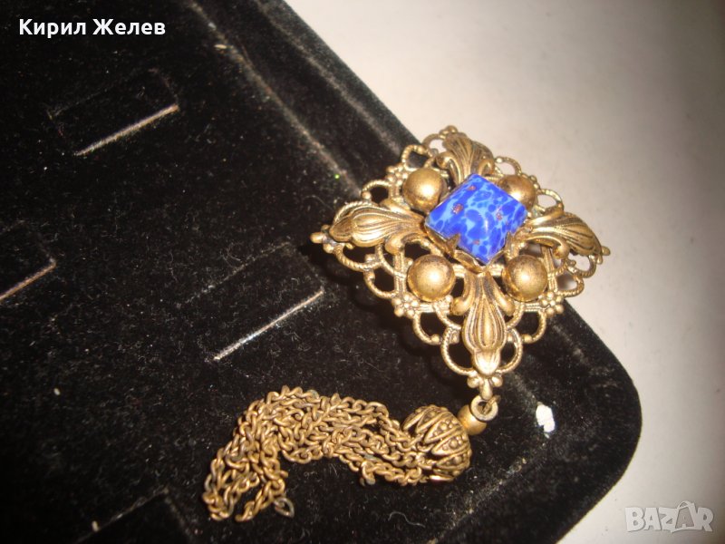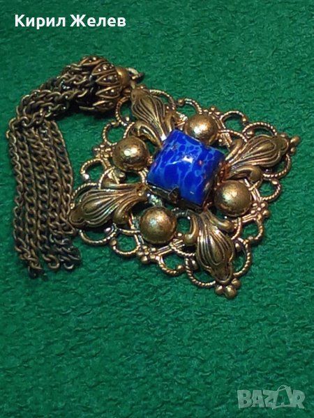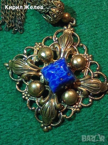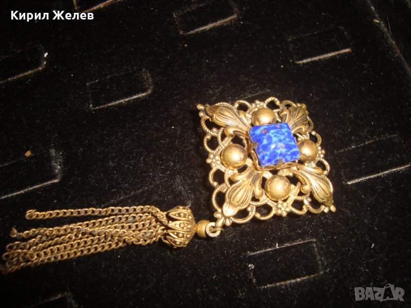 ПРЕКРАСЕН СТАРИНЕН ФИЛИГРАНЕН ПОЗЛАТЕН БРОНЗОВ Ар НУВО ПЕНДАНТ със СКЪПОЦЕНЕН КАМЪК ЛАЗУРИТ 4951
