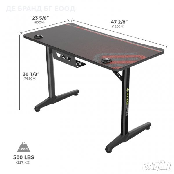 Бюрото разполага с площ, достатъчна да побере Вашите компютър, клавиатура и други геймърски компоненти