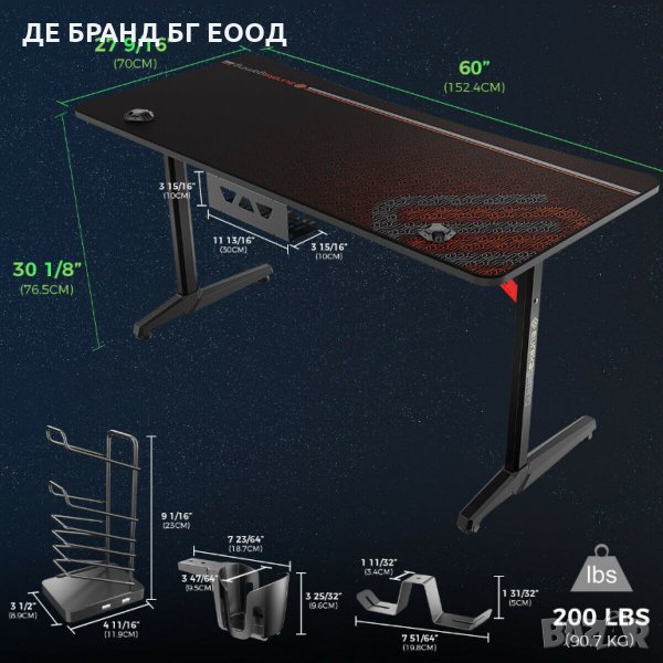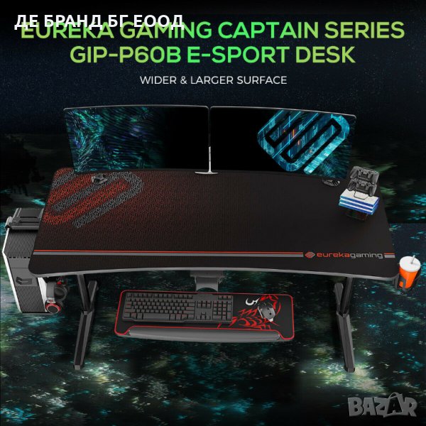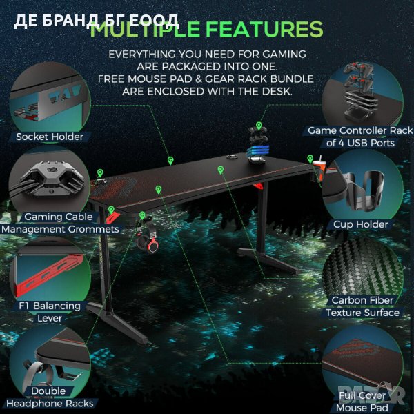 Бюрото разполага с площ, достатъчна да побере Вашите компютър, клавиатура и други геймърски компоненти.