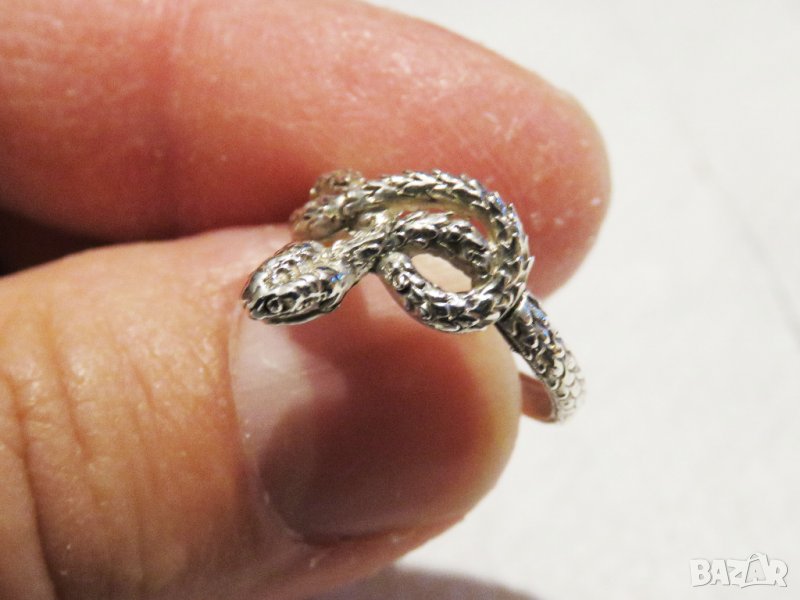 мъжки сребърен пръстен, рокерски пръстен змия моторджийски сребро