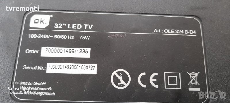 LED BOARD шасси MSDV3219-ZC01-01 от телевизор Ok. OLE 324 W-D4 дисплей T320HVN07. Борда е гарантирано работещ Демонтиран от телевизор Ok. OLE 324 W-D4 със счупен дисплей T320HVN07.2 тесвана от нашия техник