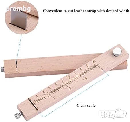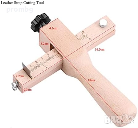 дървен инструмент за рязане на кожени ленти, каишки, ремъци, колани. Лесно регулируемият инструмент включва 3 ножа, лесни за подмяна и почистване, идеални за рязане на всякакви ленти. Напречният профил е маркиран в инчове и сантиметри, за лесно рязане на ленти с ширина до 10 см. Инструментът е с регулиране на широчината на лентата на рязане, която варира от 1,0 мм- 5,0 мм.