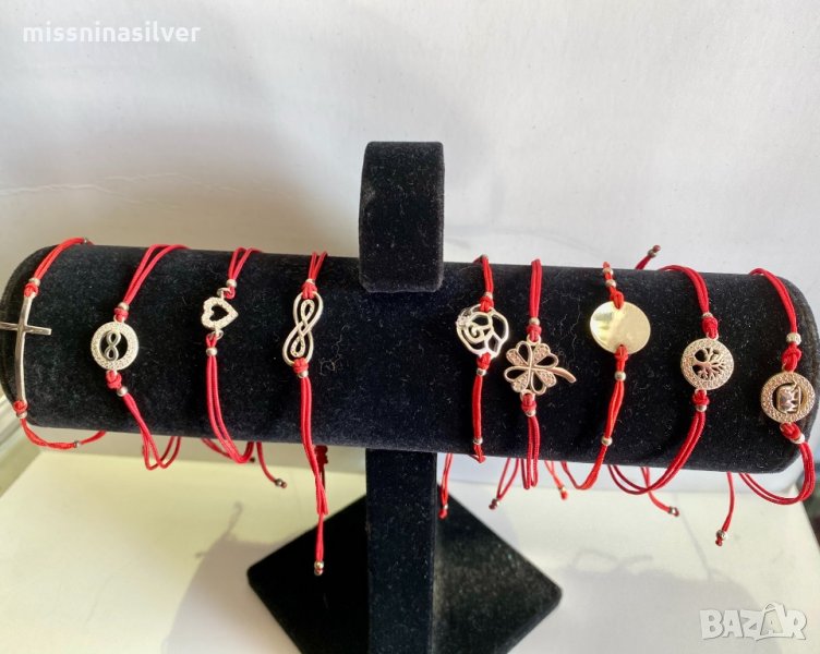 Гривни с червен конец и сребърни елементи. Сребро проба 925