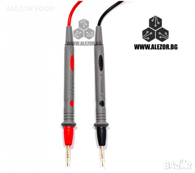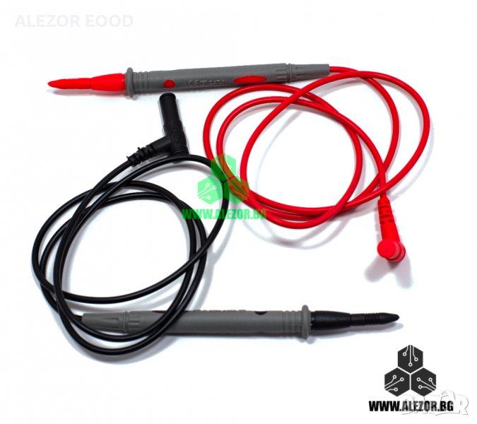 Сонди за мултицет с тънки и остри върхове. За свързване към мултицет за измерване на напрежение, съпротивление и други. Дължината на кабелите е 910 mm, а на контактната повърхност 22 mm.