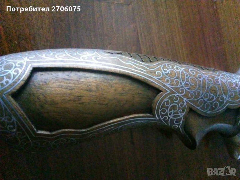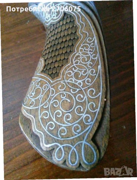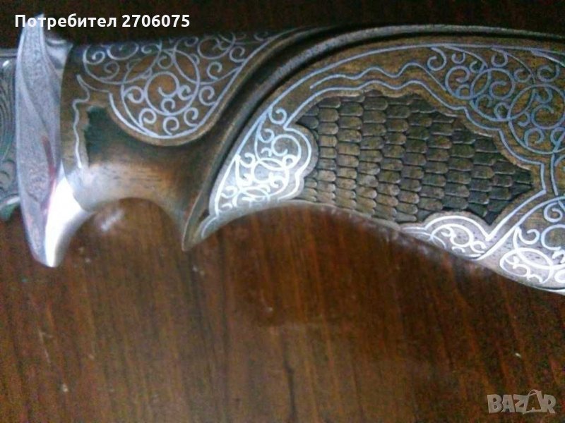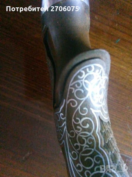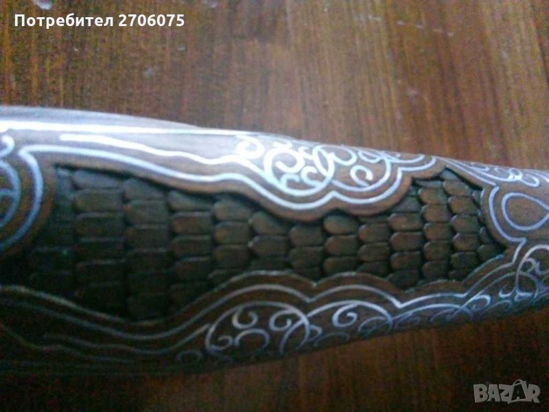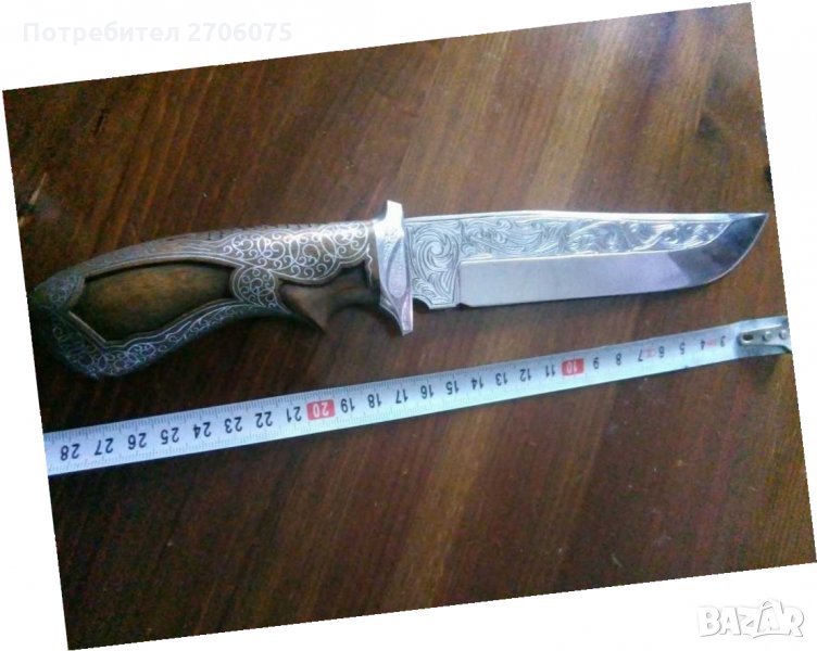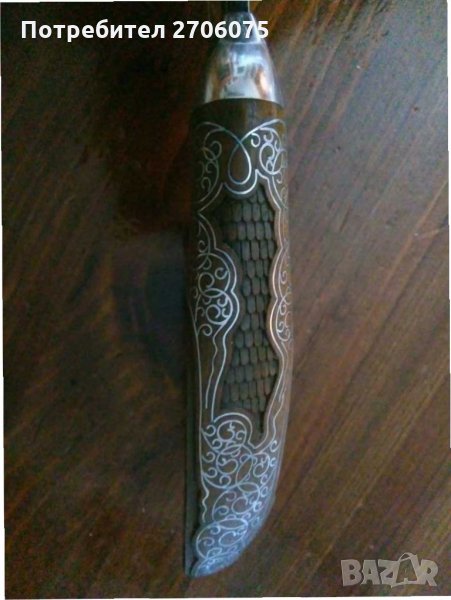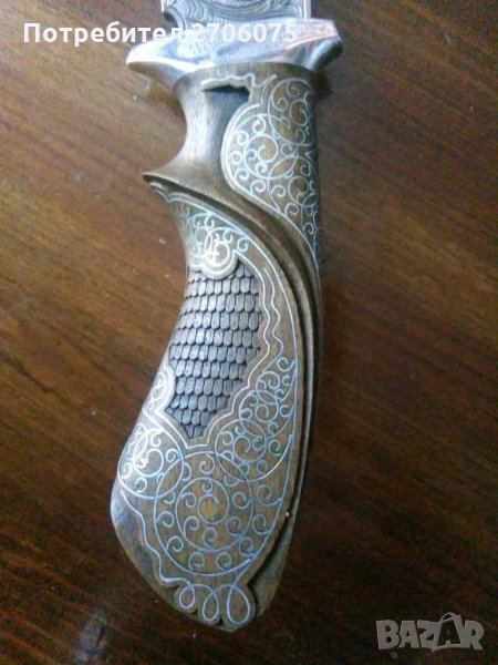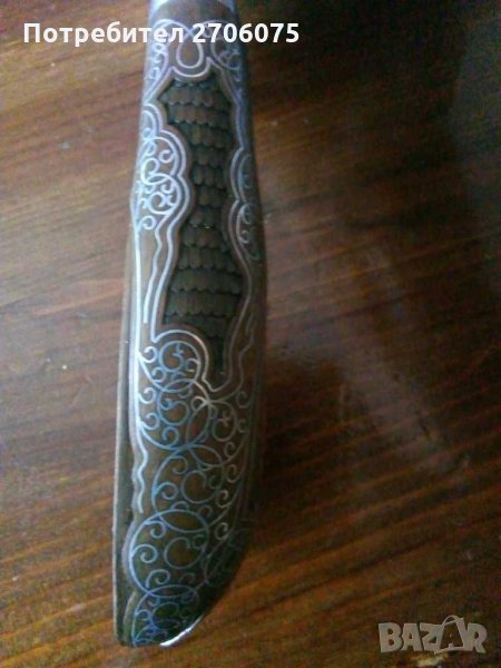 Изработен е от най добрия майстор ножар в България,за срок от три месеца.Втори такъв няма ,няма и да има !!!.Остър като бръснач.На живо е нещо Уникално,ювелирно изпълнение !!! крайна цена.