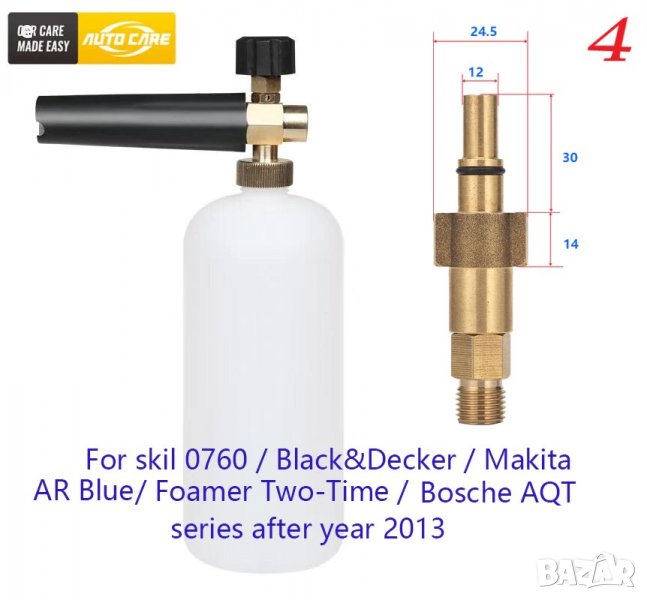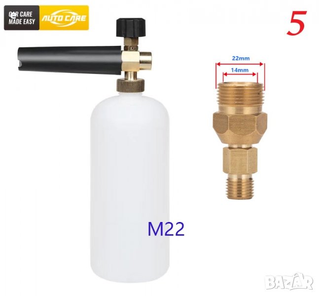 -4- За: Bosch AQT (след 2013г.) / My Project (Кауфланд) / Black Decker/Makita /AR Blue Clean/ / Michelin / някои модели Interskol/Greenworks Europe/ Makita / Skil 0760 ;-5- За: Kranzle / и др. с резба M22;
