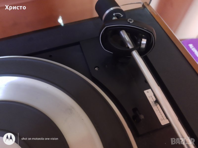 Като цяло грамофона работи. При авто старт рамото пада върху плочата но моментално бива избутано по цялата плоча до края. ако се задържи и заработи и ръчно се сложи няма проблем засвирва . сменени са звуковите кабели с чинчове старите бяха 5-ца. нищо не е пипано и човъркано всичко друго се виждаа на снимките. Продава се без доза .