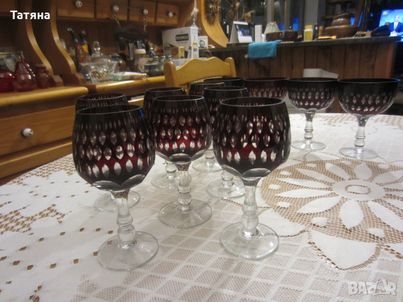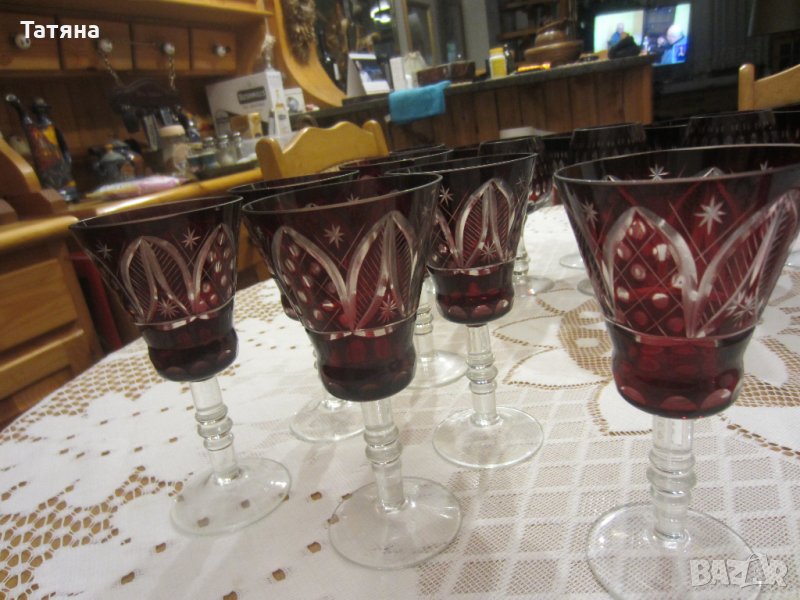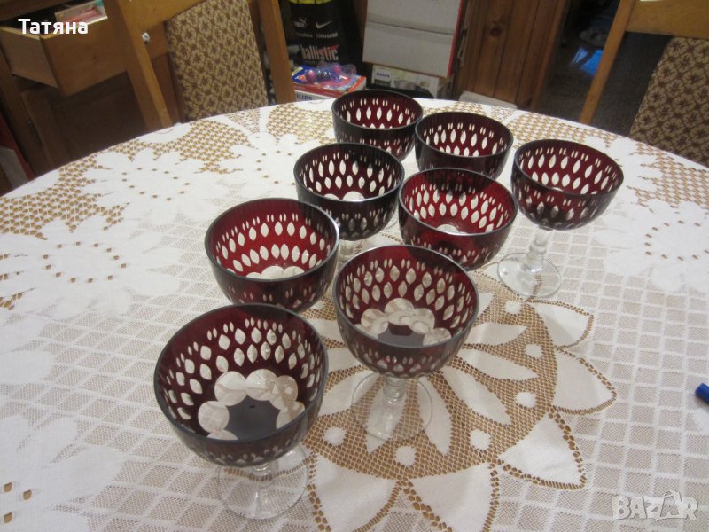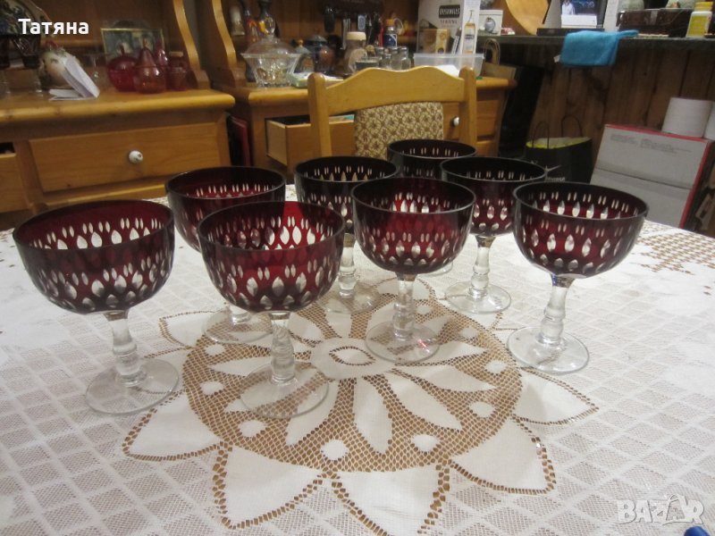 КРИСТ.ЧАШИ С РУБИНЕН ЦВЯТ,РЪЧНО ИНКРУСТИРАНИ и др