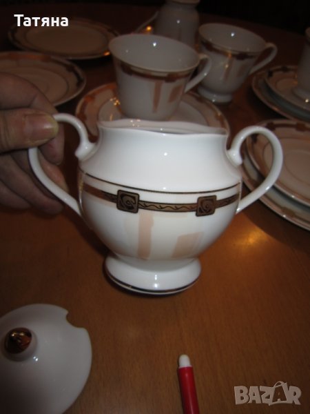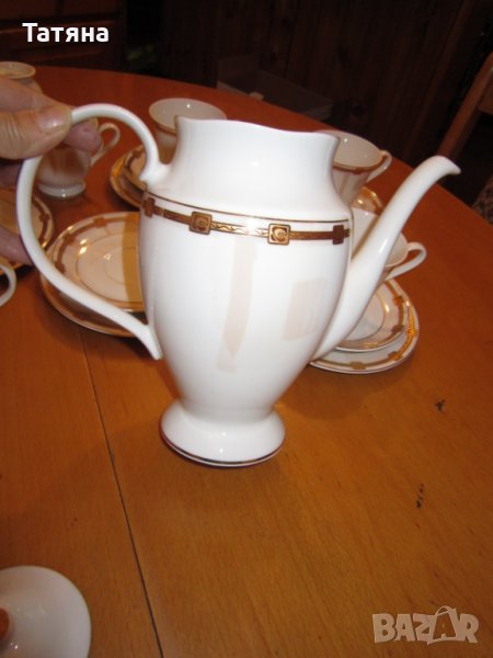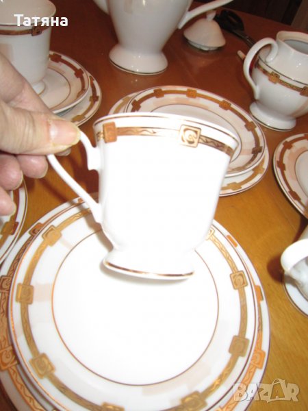 Сервиза за кафе и чай. Има и 6 броя чинии за торта/десертни/.Изработен е по много стар английски модел от 1852г-.ROKZAL.Състои се от 20 части.Печата е показан -за любители.Снимки 1 - 8;ЦЕНА -180 €