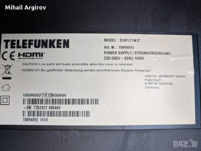 TELEFUNKEN D50F275N3C-17IPS20-17MB95M-V14 60Nz 1G1D SW V0_1, снимка 1 - Части и Платки - 31357755 TELEFUNKEN D50F275N3C-17IPS20-17MB95M-V14 60Nz 1G1D SW V0_1, снимка 2 - Части и Платки - 31357755 TELEFUNKEN D50F275N3C-17IPS20-17MB95M-V14 60Nz 1G1D SW V0_1, снимка 3 - Части и Платки - 31357755 TELEFUNKEN D50F275N3C-17IPS20-17MB95M-V14 60Nz 1G1D SW V0_1, снимка 4 - Части и Платки - 31357755 TELEFUNKEN D50F275N3C-17IPS20-17MB95M-V14 60Nz 1G1D SW V0_1, снимка 5 - Части и Платки - 31357755 TELEFUNKEN D50F275N3C-17IPS20-17MB95M-V14 60Nz 1G1D SW V0_1, снимка 6 - Части и Платки - 31357755 TELEFUNKEN D50F275N3C-17IPS20-17MB95M-V14 60Nz 1G1D SW V0_1, снимка 7 - Части и Платки - 31357755 TELEFUNKEN D50F275N3C-17IPS20-17MB95M-V14 60Nz 1G1D SW V0_1, снимка 8 - Части и Платки - 31357755 TELEFUNKEN D50F275N3C-17IPS20-17MB95M-V14 60Nz 1G1D SW V0_1, снимка 9 - Части и Платки - 31357755 TELEFUNKEN D50F275N3C-17IPS20-17MB95M-V14 60Nz 1G1D SW V0_1, снимка 10 - Части и Платки - 31357755 TELEFUNKEN D50F275N3C-17IPS20-17MB95M-V14 60Nz 1G1D SW V0_1, снимка 11 - Части и Платки - 31357755 TELEFUNKEN D50F275N3C-17IPS20-17MB95M-V14 60Nz 1G1D SW V0_1, снимка 12 - Части и Платки - 31357755 1/12