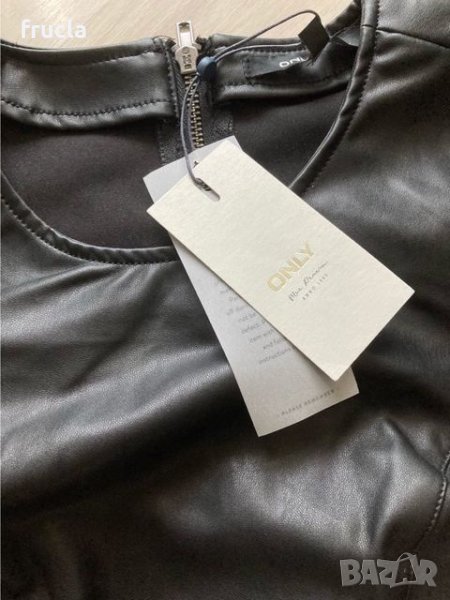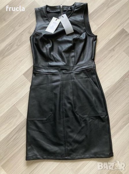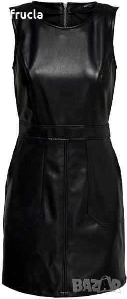Ефектна кожена рокля на марката Онли тип сукман с джобове и закопàване с цип на гърба.