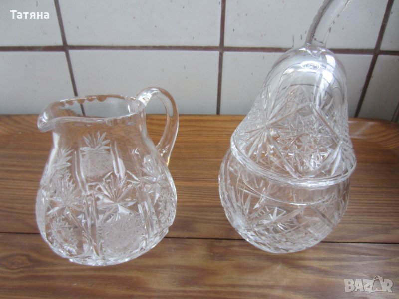 Кристални каничка -18см;цена -90€ и кристална захарница - КРУША 20см ;Цена-80 €лв.Производител Бохемия -Чехия.СНИМКА ;8-9
