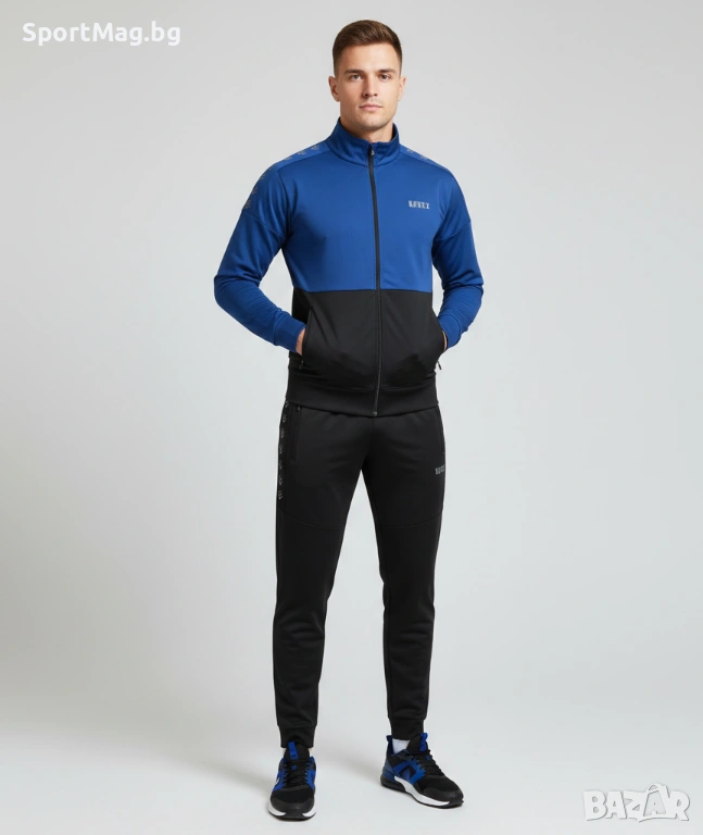 • Спортен екип NOREX е в класически цвят с цип отпред и на джобовете. Подходящ както за спорт, разходки в парка, а също така и за ежедневието. Долнището е право и леко по-събрано от нормалното!