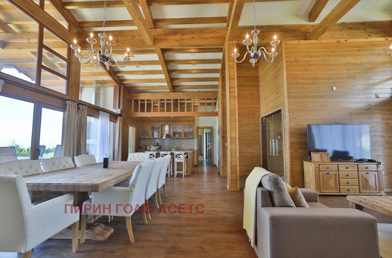 Предлагаме за продажба къща Диамант - 450кв.м в Пирин Голф & Kънтри Клуб. Къщата се отличава със собствена сауна, басейн, кино салон, офис, гараж за два автомобила и студио за гости със собствена кухня. Разполага с просторен хол с камина, трапезария, кухня, три спални с индивидуални бани и допълнителна тоалетна. В допълнение къщата разполага с две просторни тераси, едната от които е с барбекю и планинска газова камина, където можете да се насладите на приятна почивка след дълъг ден на голф игрището. Всяко помещение е оборудвано с индивидуален контролер за избор на температура. Екстериорът и интериорът са изцяло съобразени с типичния планински стил - дърво и камък. Имота разполага и със собствено дворно място, оградено с висока растителност, което гарантира Вашето уединение. Къщата ще бъде иградена в най-новият квартал в комплекса. Срока за изграждане е съобразен с начина на плащане, а всички къщи се продават завършени до ключ.