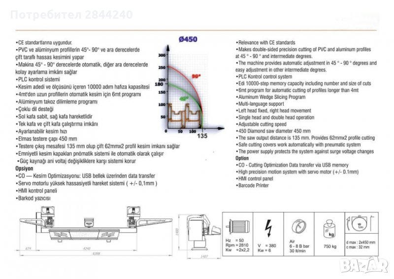 Автоматичен режим (чрез избутване) на рязане за дълги профили до 8,0м.